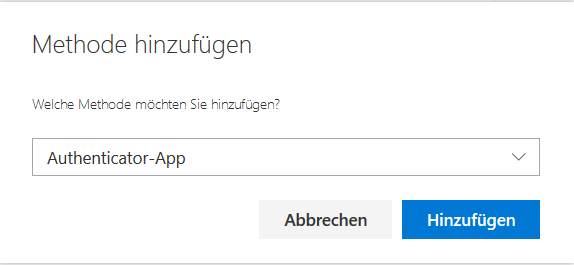 - Abbildung 3: Methode «Authenticator-App» auswählen und hinzufügen.