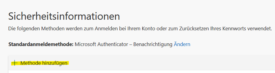 - Abbildung 2: Funktion «Methode hinzufügen» im Verzeichnis Sicherheitsinformationen