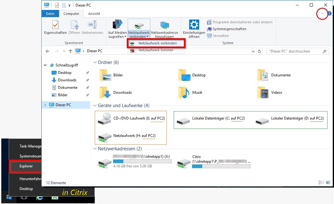 - Abbildung 1: Im Citrix und Explorer Netzlaufwerk verbinden