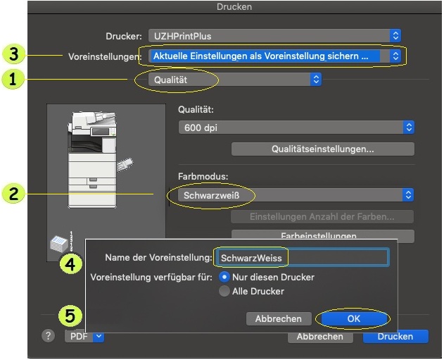 UZH Print Plus - Schwarzweissdruck einrichten