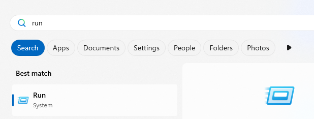 Type "run" in the search field of the Start menu (for German operating systems: Ausführen) and start the program.