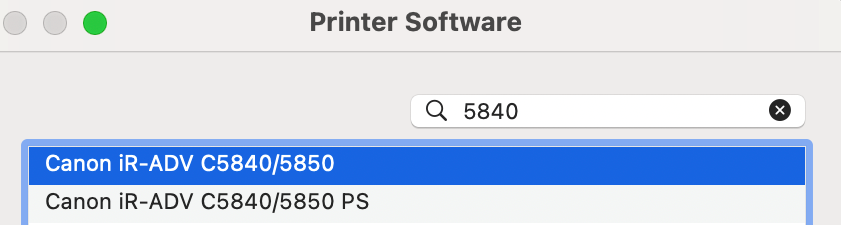 USE: Choose a driver > Select Software > Canon iR-ADV C5840/5850